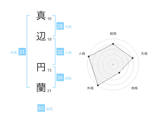 真辺 円蘭さんの外格は31画の5点!