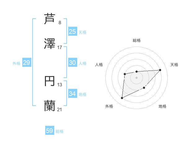 芦澤 円蘭さんの総格は59画の1点!