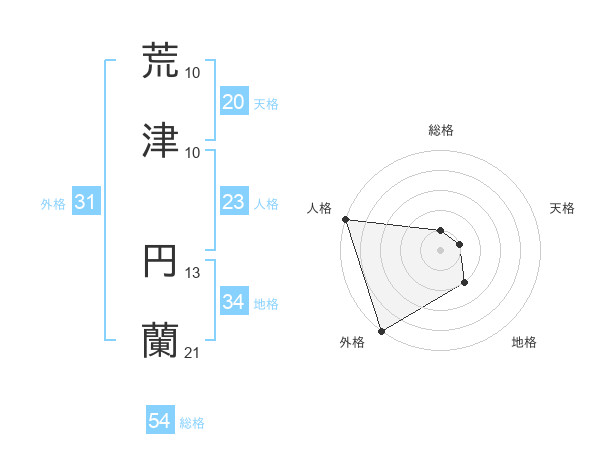 荒津 円蘭さんを姓名の画数から五運を鑑定