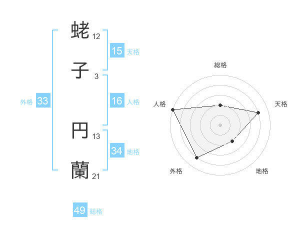 蛯子 円蘭さんの総格は49画の2点!