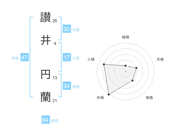 讃井 円蘭さんを姓名の画数から五運を鑑定