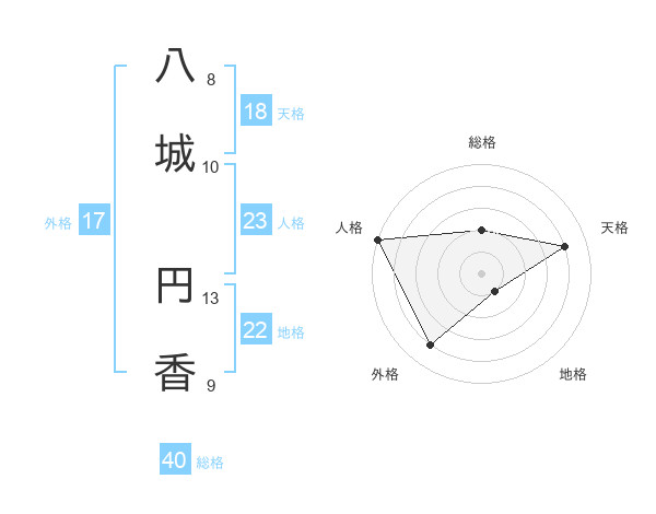 八城 円香さんの天格は18画の4点!