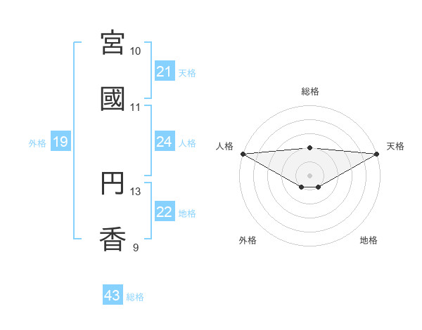 宮國 円香さんの天格は21画の5点!
