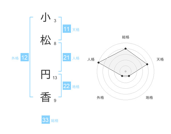 小松 円香さんの総格は33画の4点!