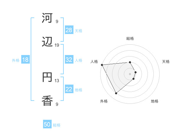 河辺 円香さんの総格は50画の2点!