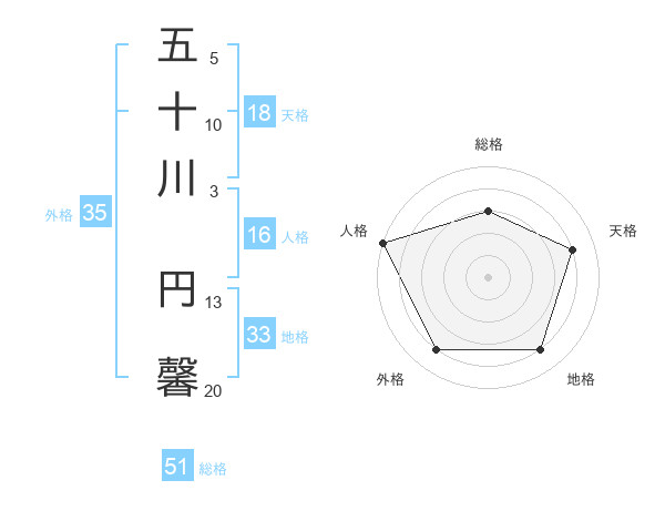 五十川 円馨さんを姓名の画数から五運を鑑定