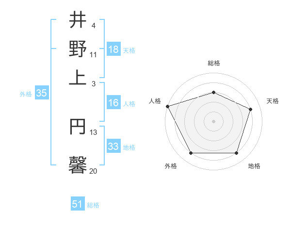 井野上 円馨さんを姓名の画数から五運を鑑定