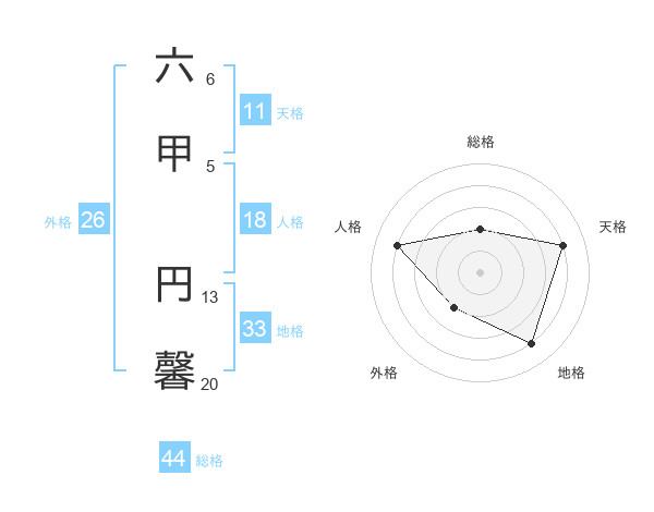 六甲 円馨さんの総格は44画の2点!