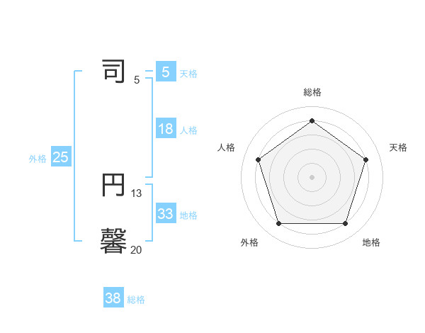 司 円馨さんの総格は38画の4点!