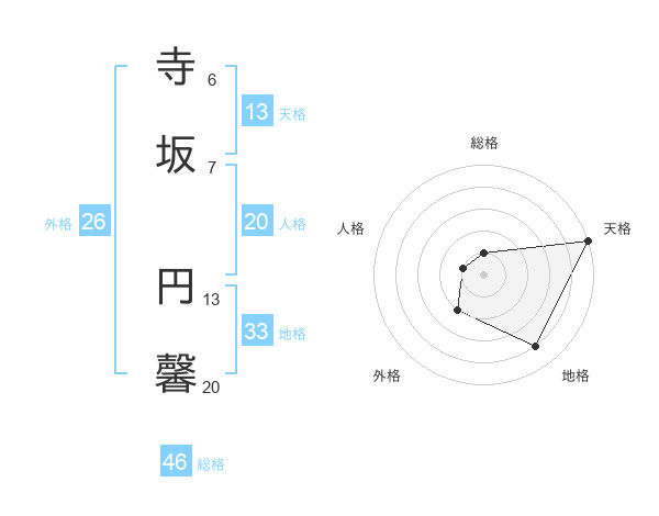 寺坂 円馨さんの天格は13画の5点!