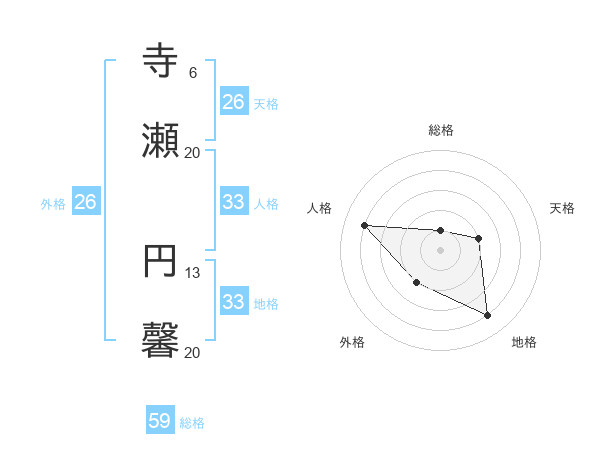 寺瀬 円馨さんの総格は59画の1点!