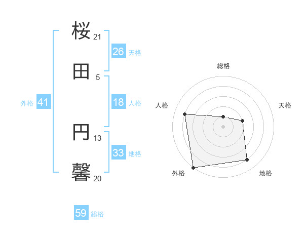 桜田 円馨さんを姓名の画数から五運を鑑定