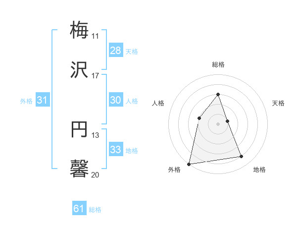 梅沢 円馨さんを姓名の画数から五運を鑑定