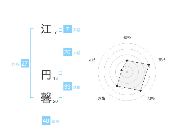 江 円馨さんの外格は27画の3点!