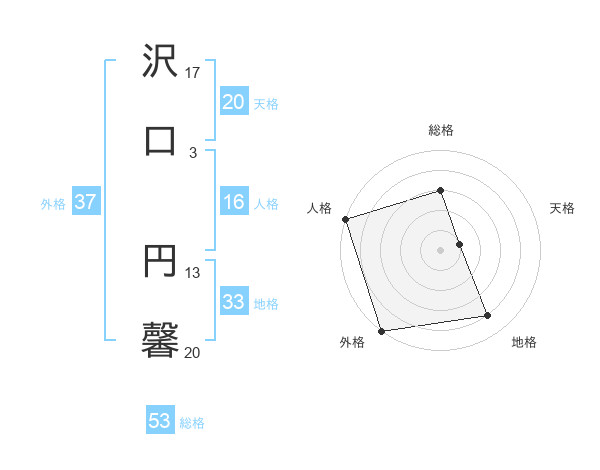 沢口 円馨さんを姓名の画数から五運を鑑定