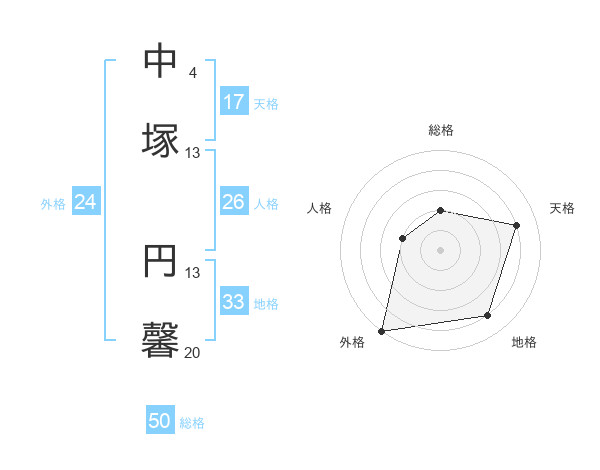 中塚 円馨さんを姓名の画数から五運を鑑定