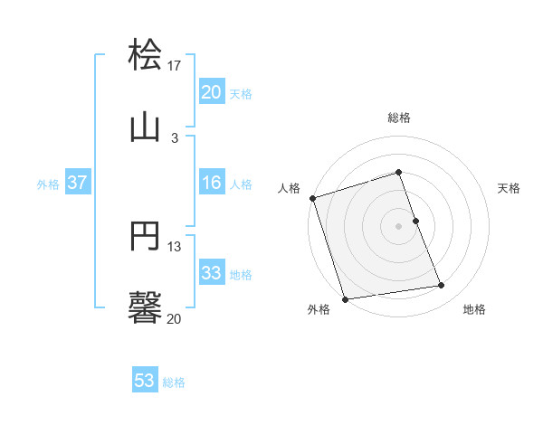 桧山 円馨さんの総格は53画の3点!