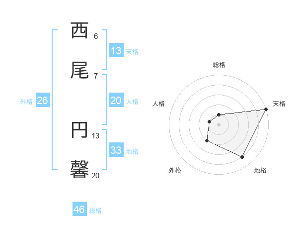 西尾 円馨さんの天格は13画の5点!