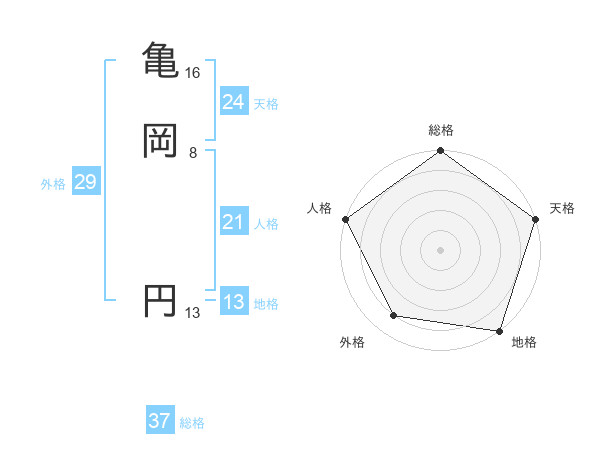 亀岡 円さんの総格は37画の5点!