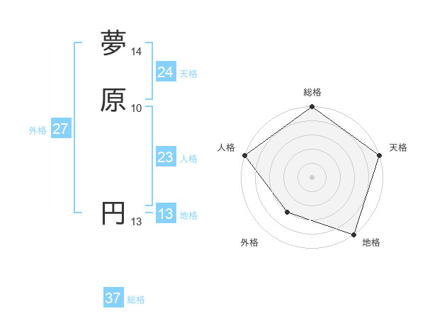 夢原 円さんの天格は24画の5点!