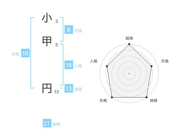 小甲 円さんの総格は21画の5点!