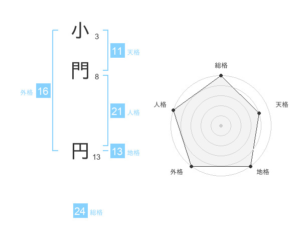 小門 円さんの総格は24画の5点!