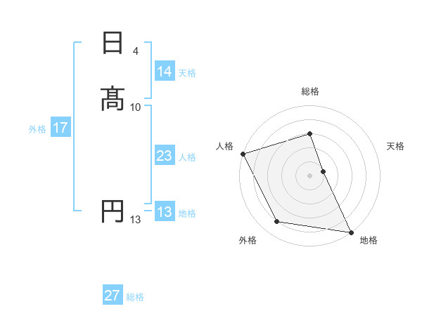 日髙 円さんの人格は23画の5点!