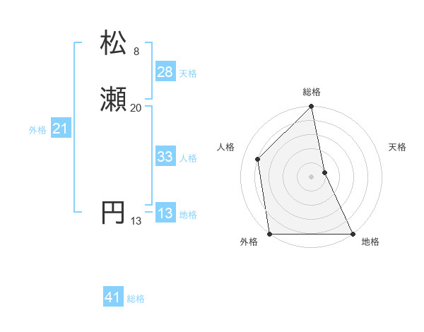 松瀬 円さんの総格は41画の5点!