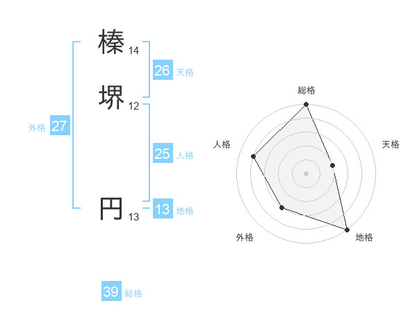 榛堺 円さんの外格は27画の3点!