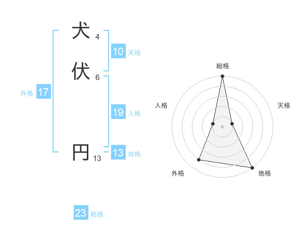 犬伏 円さんの総格は23画の5点!