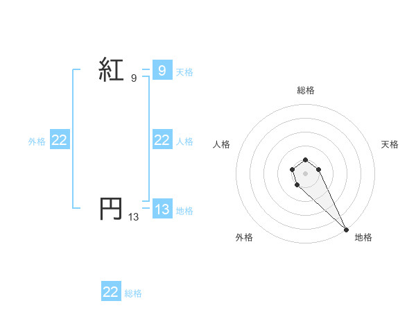 紅 円さんの外格は22画の1点!