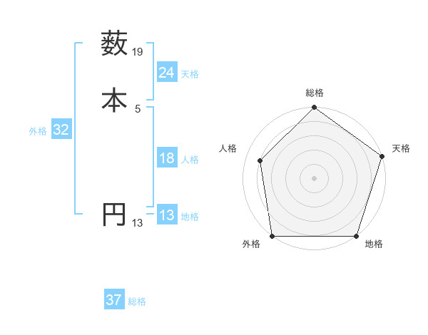 薮本 円さんの総格は37画の5点!