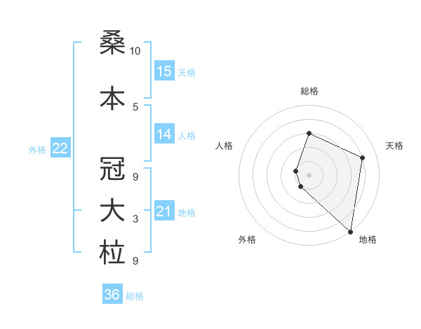 桑本 冠大柆さんを姓名の画数から五運を鑑定