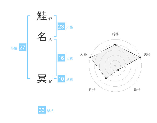 鮭名 冥さんの外格は27画の3点!