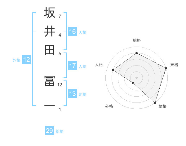 坂井田 冨一さんを姓名の画数から五運を鑑定
