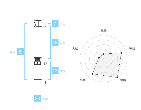 江 冨一さんの総格は20画の1点!