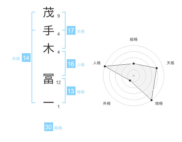 茂手木 冨一さんの天格は17画の4点!