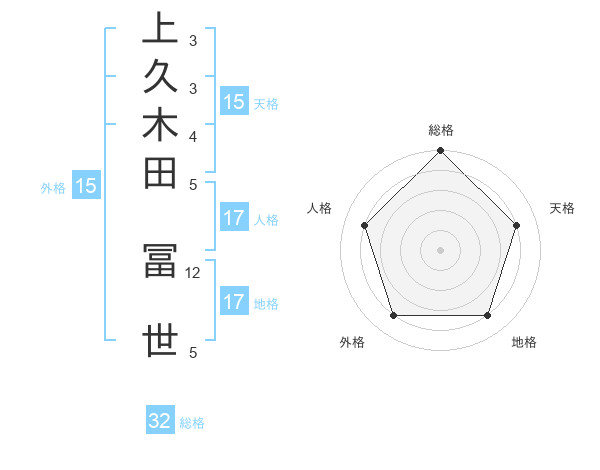 上久木田 冨世さんの総格は32画の5点!
