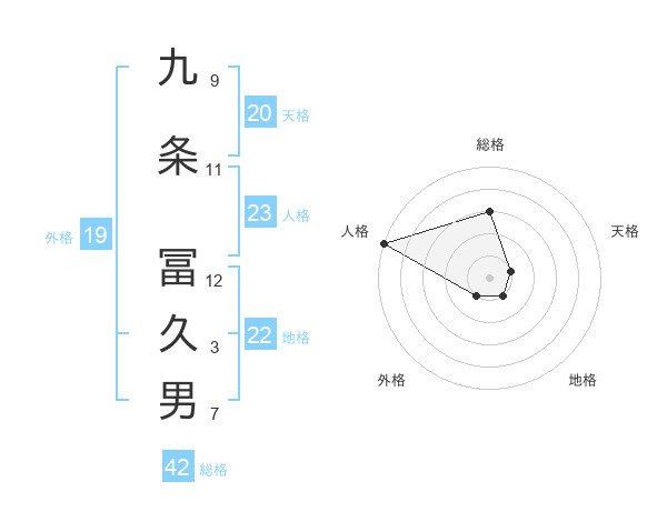 九条 冨久男さんの総格は42画の3点!