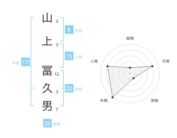 山上 冨久男さんを姓名の画数から五運を鑑定