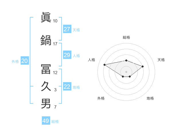 眞鍋 冨久男さんを姓名の画数から五運を鑑定