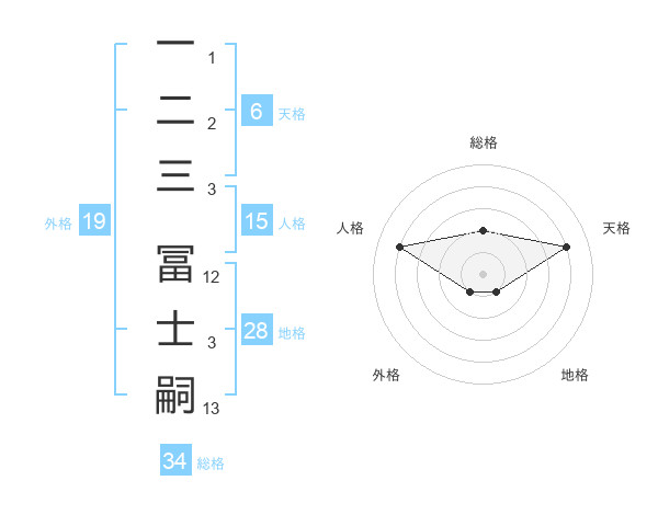 一二三 冨士嗣さんの総格は34画の2点!