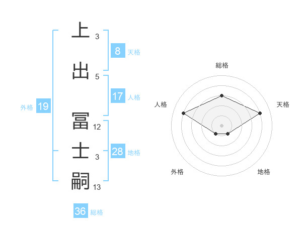 上出 冨士嗣さんを姓名の画数から五運を鑑定