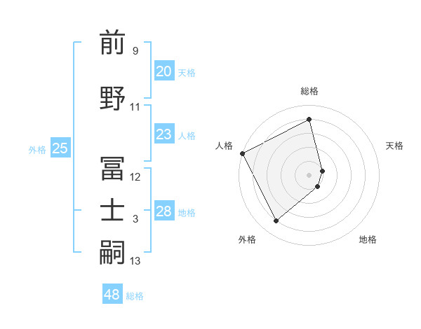 前野 冨士嗣さんを姓名の画数から五運を鑑定