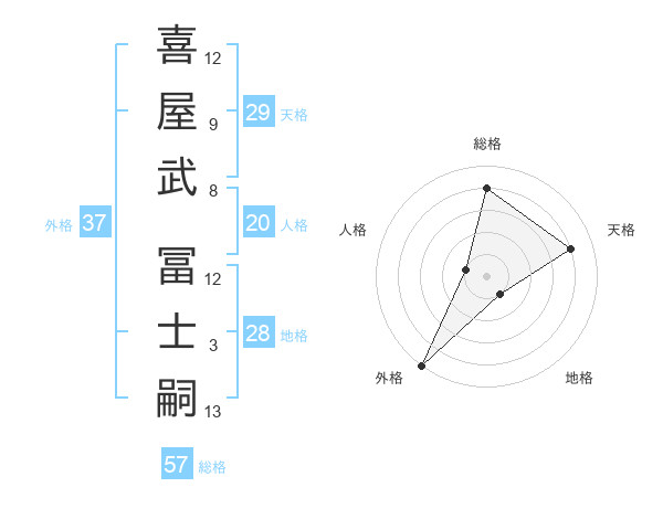 喜屋武 冨士嗣さんの外格は37画の5点!