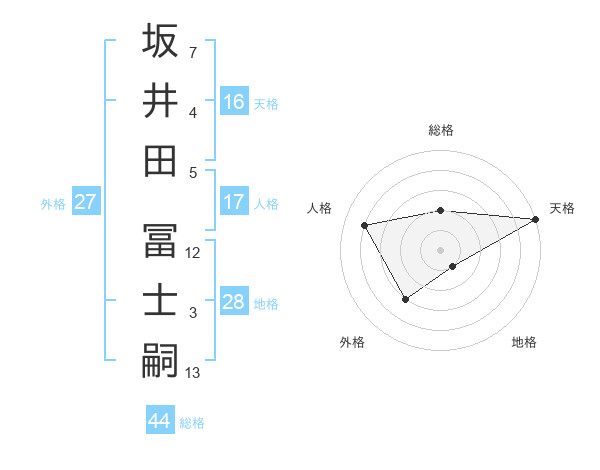 坂井田 冨士嗣さんを姓名の画数から五運を鑑定