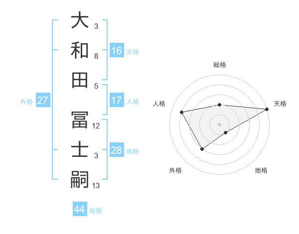大和田 冨士嗣さんを姓名の画数から五運を鑑定