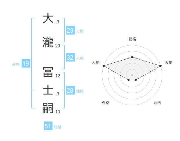 大瀧 冨士嗣さんを姓名の画数から五運を鑑定