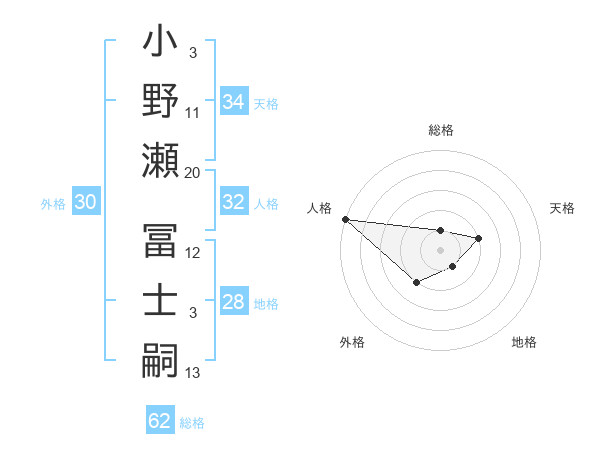 小野瀬 冨士嗣さんを姓名の画数から五運を鑑定