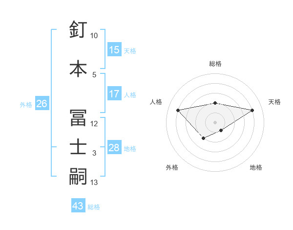 釘本 冨士嗣さんを姓名の画数から五運を鑑定